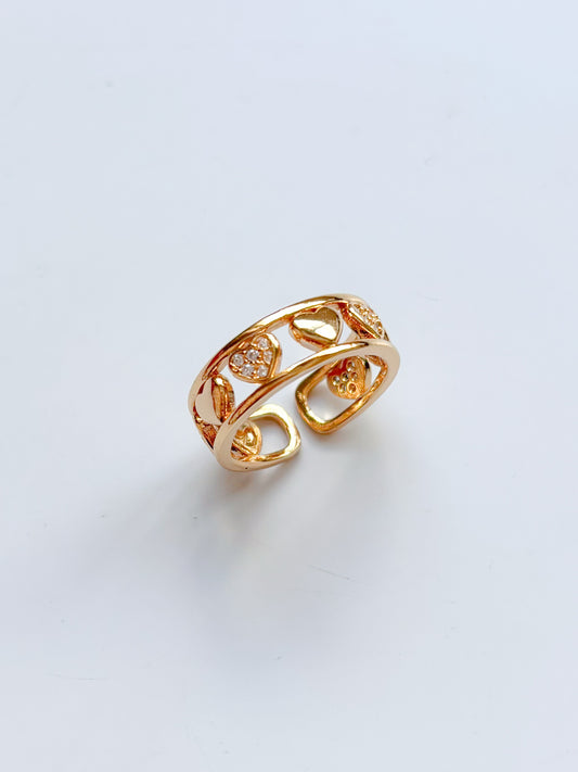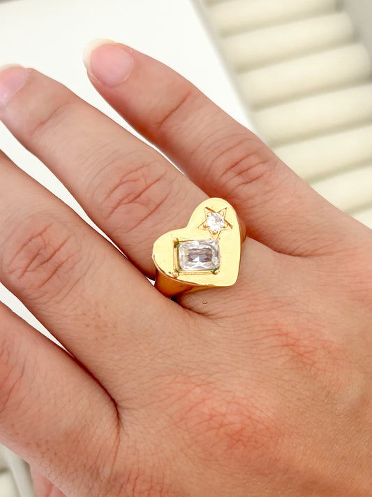 Anillo Corazón Piedras, Anillo Dorado, Acero Inoxidable