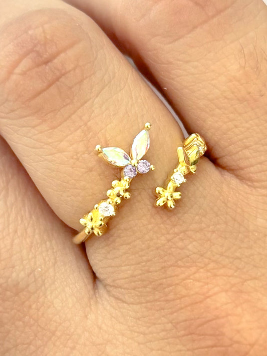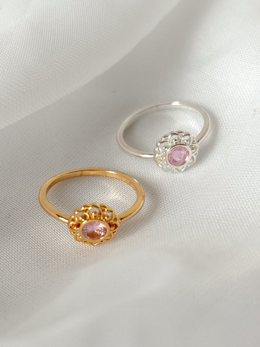 Anillo Flor, Anillo con forma de Flor con Piedra Rosada, Acero Inoxidable