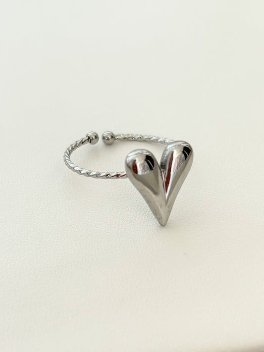 Anillo Corazon Largo, Plateado, Acero Inoxidable