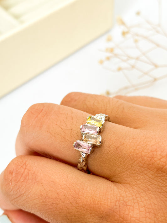Anillo Rustico, con zirconias Rosadas, Acero Inoxidable