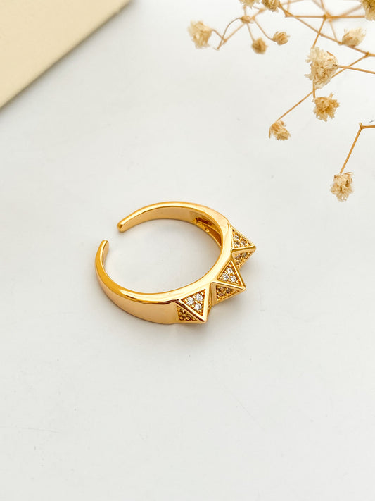 Anillo Púas Cuadradas, Anillo Dorado con Zirconías, Acero Inoxidable