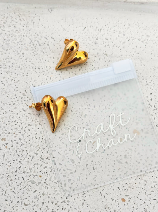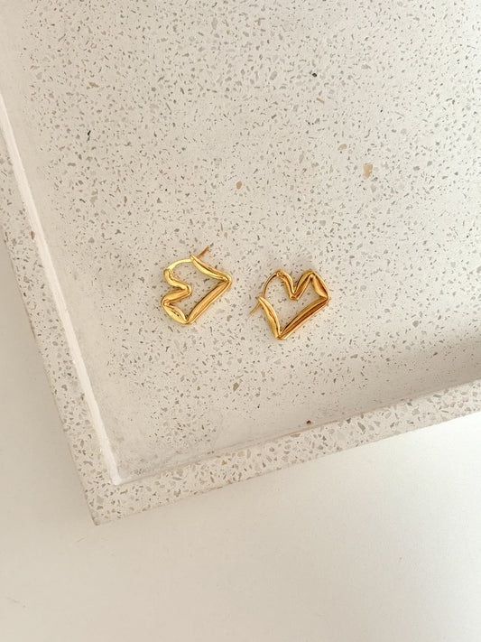 Argollas Corazón Rectangular, Argollas Corazón Abstracto, Aretes Minimalistas, Acero Inoxidable