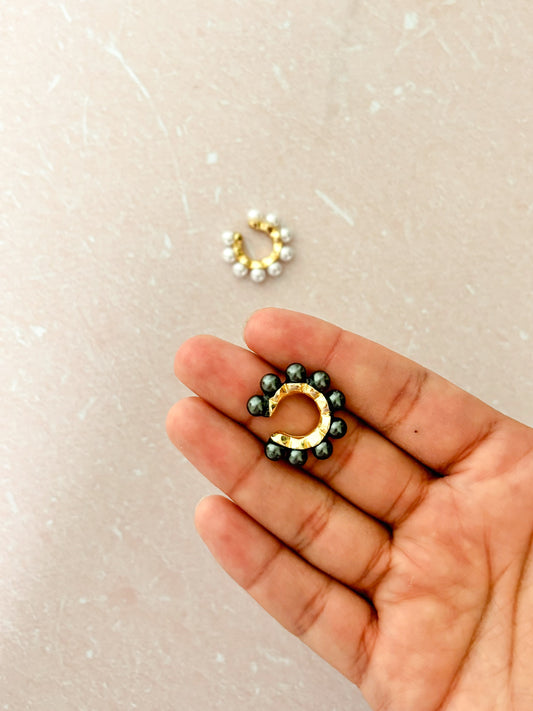 Earcuff Perlas Negras, Arete a Presión, Acero Inoxidable