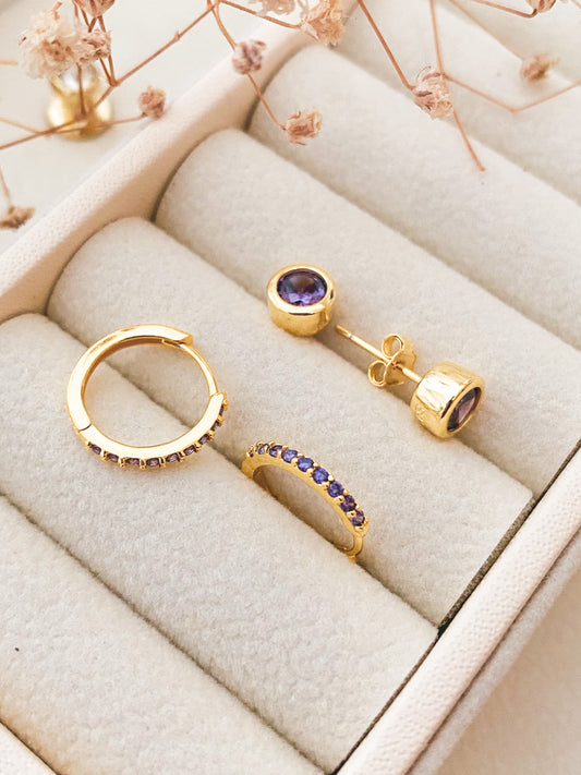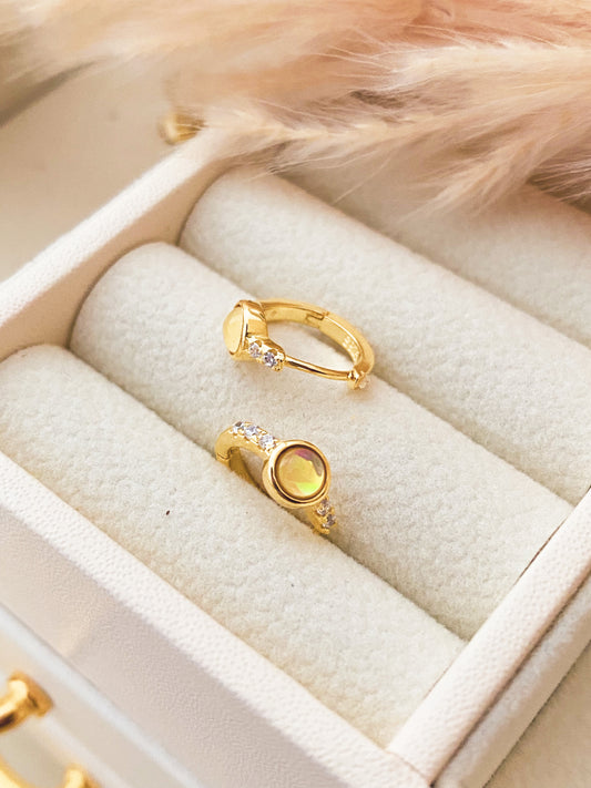 Precio habitual 85.00 GTQPrecio habitualPrecio unitario / porPrecio de oferta 85.00 GTQDúo de Argollas y Aretes Pequeños con Zirconias de Colores, Acero Inoxidable