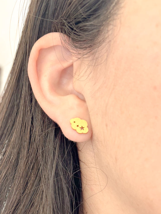 Aretes Pequeños Nubes Dorado, Acero Inoxidable