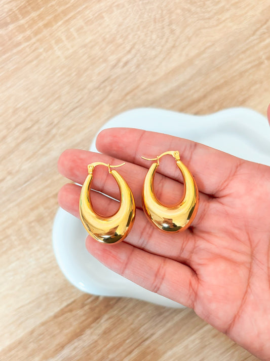 Argollas Doradas Largas, Argollas tipo Gota, Acero Inoxidable