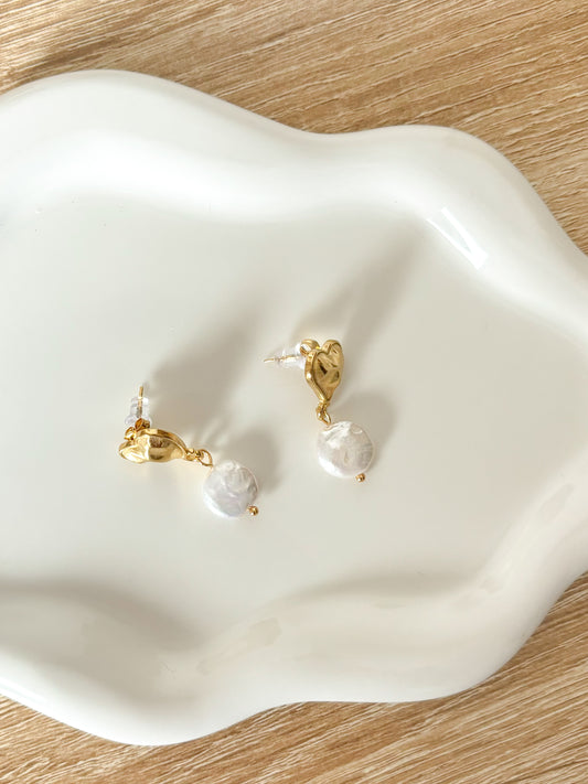 Aretes Perla con Corazón, Aretes Dorados