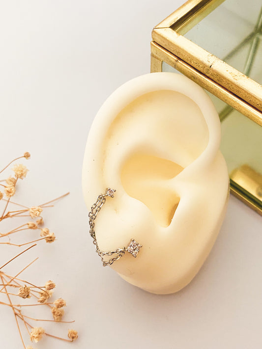 Aretes Dobles con Cadena, Arete para Doble Perforación, Plata 925