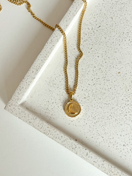 Cadena Luna, Cadena con Dije Redondo de Luna Dorada, Acero Inoxidable