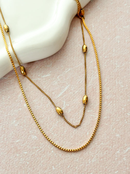 Cadena Doble Capa, Snake y Drops, Acero Inoxidable