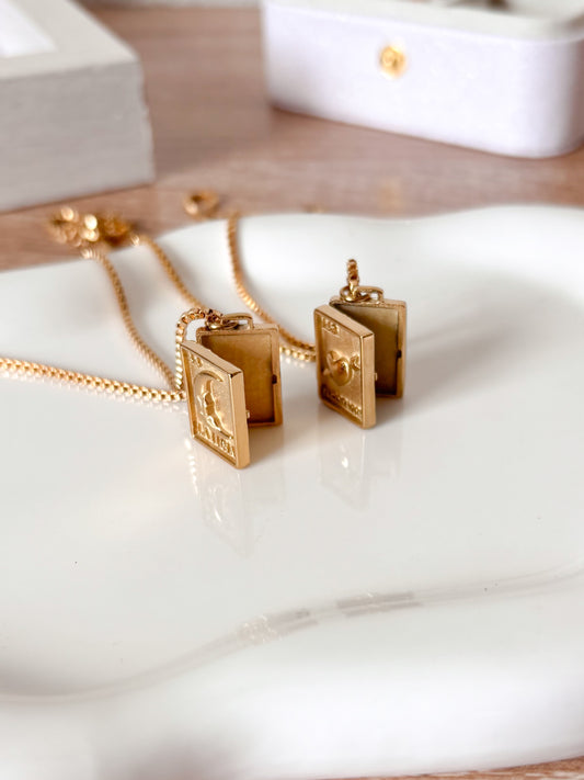 Precio habitual 80.00 GTQPrecio habitualPrecio unitario / porPrecio de oferta 80.00 GTQRelicario Libro Poker, Corazón y Luna, Cadena con Fotos internas, Acero Inoxidable