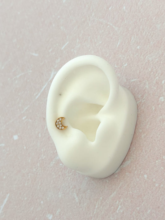 Piercing Luna, Piercing para Hélix, Luna Gruesa, Acero Quirúrgico
