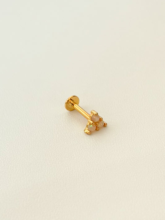 Piercing Ópalos, Tres Ópalos, Piercing con Tope Plano, Acero Quirúrgico